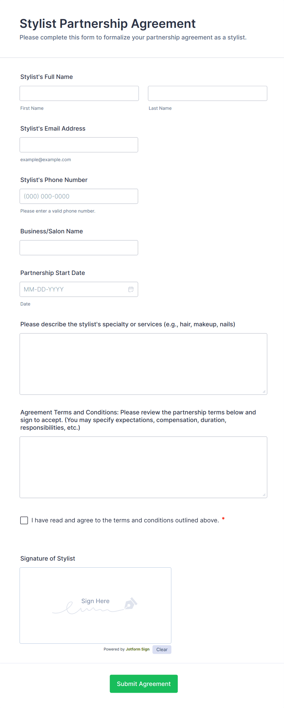 Customize your Salon Form to match your barbershop, hairdresser, or beauty shop with our easy-to-use Form Builder — no coding required! Just drag and drop form fields and images, edit the text to include your salon’s policies, and even change the fonts and colors to match your branding. And if you’d like to store submissions in your other online accounts, such as G Suite, Dropbox, or Airtable, do it automatically with our 100+ free apps and integrations! Whether you need client intake forms, consent forms, or appointment forms for your spa or salon, treat yourself to our selection of online salon form templates to help you take care of business.
