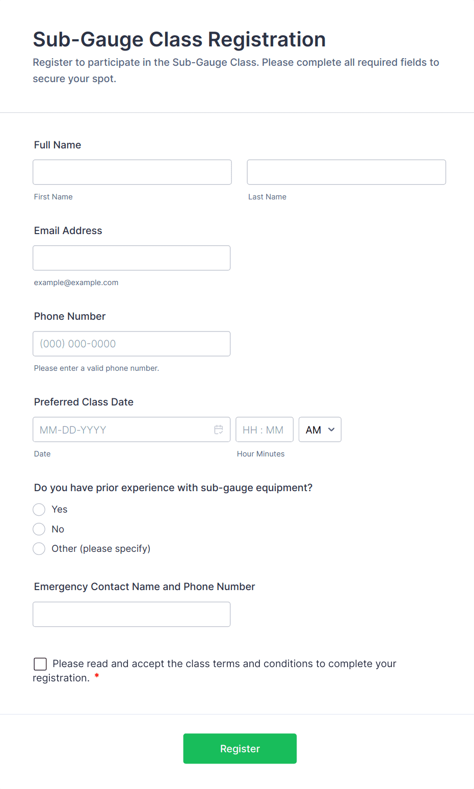 A Training Registration Form is a user-friendly form template designed to streamline the registration process for training providers, corporate HR teams, nonprofits, and event management teams.