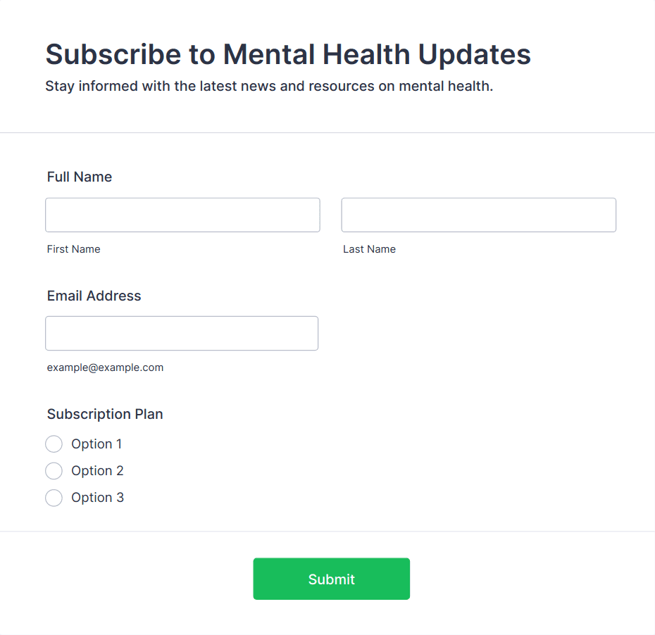 • Newsletter Sign Up: Typically requires only name and email, with optional interest checkboxes.