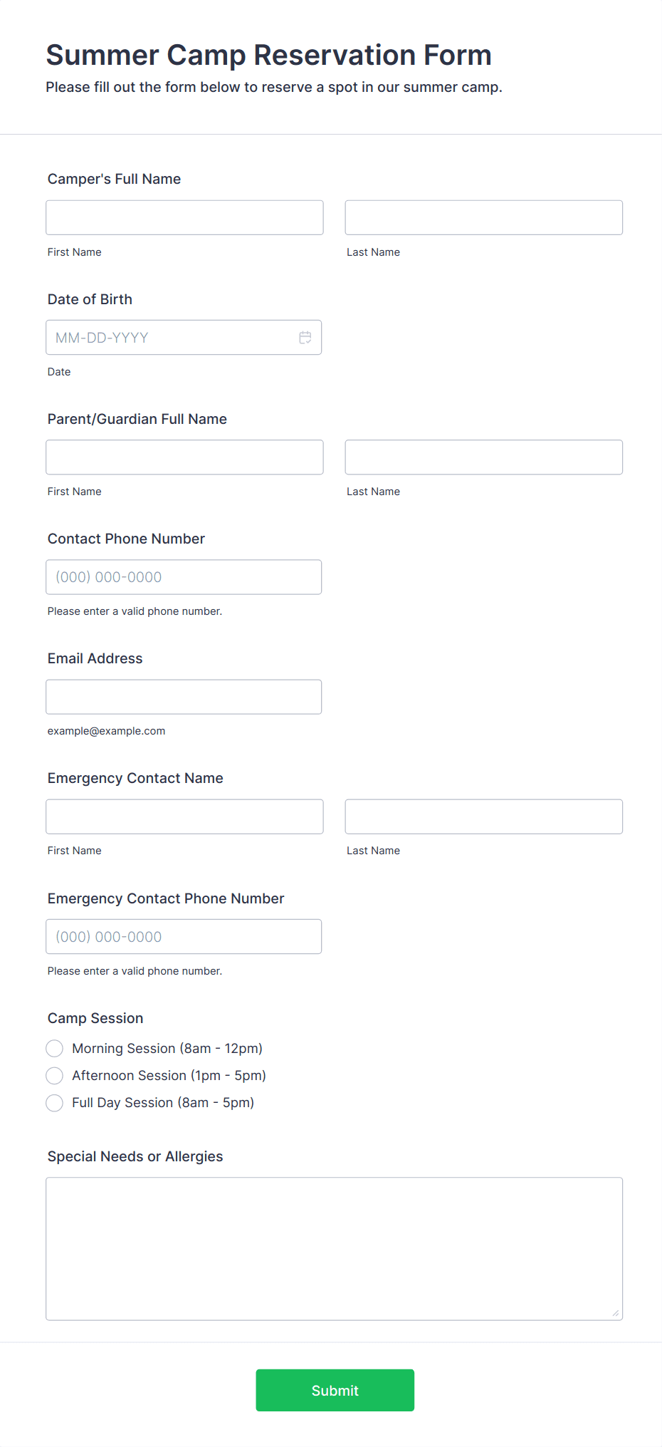 The Day Camp Registration Form is an essential tool for camp organizers, schools, community organizations, and any group hosting a day camp.