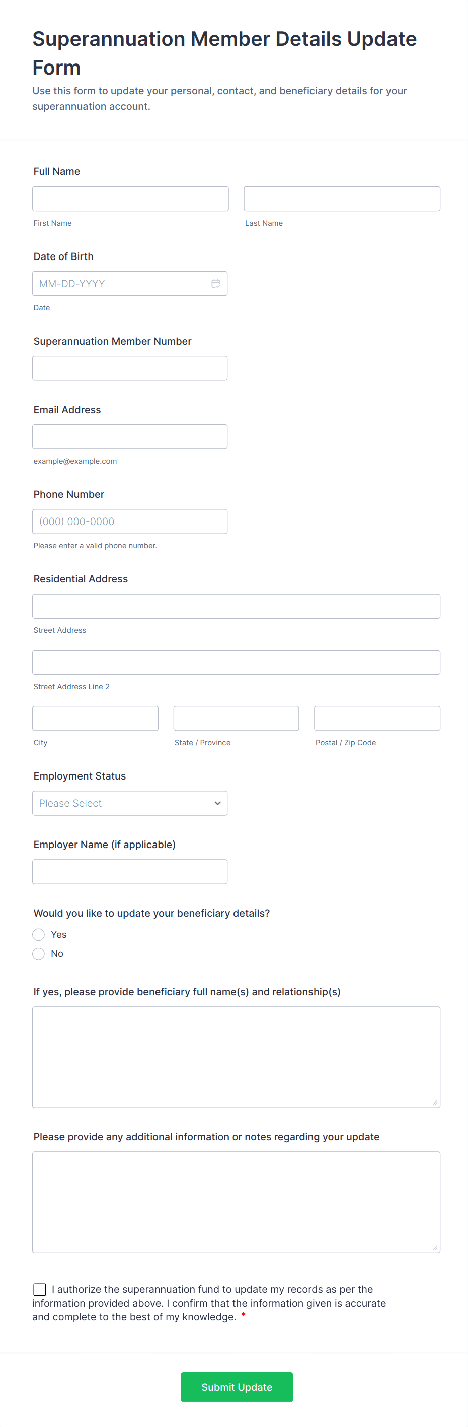 The form templates here are for informational purposes only. Jotform is not providing legal, financial, or other advice, or implying that the forms are legally valid in all or any jurisdictions. Before using any such form, consult an attorney and/or other applicable professionals to make sure that the form meets your needs, legally and otherwise.
