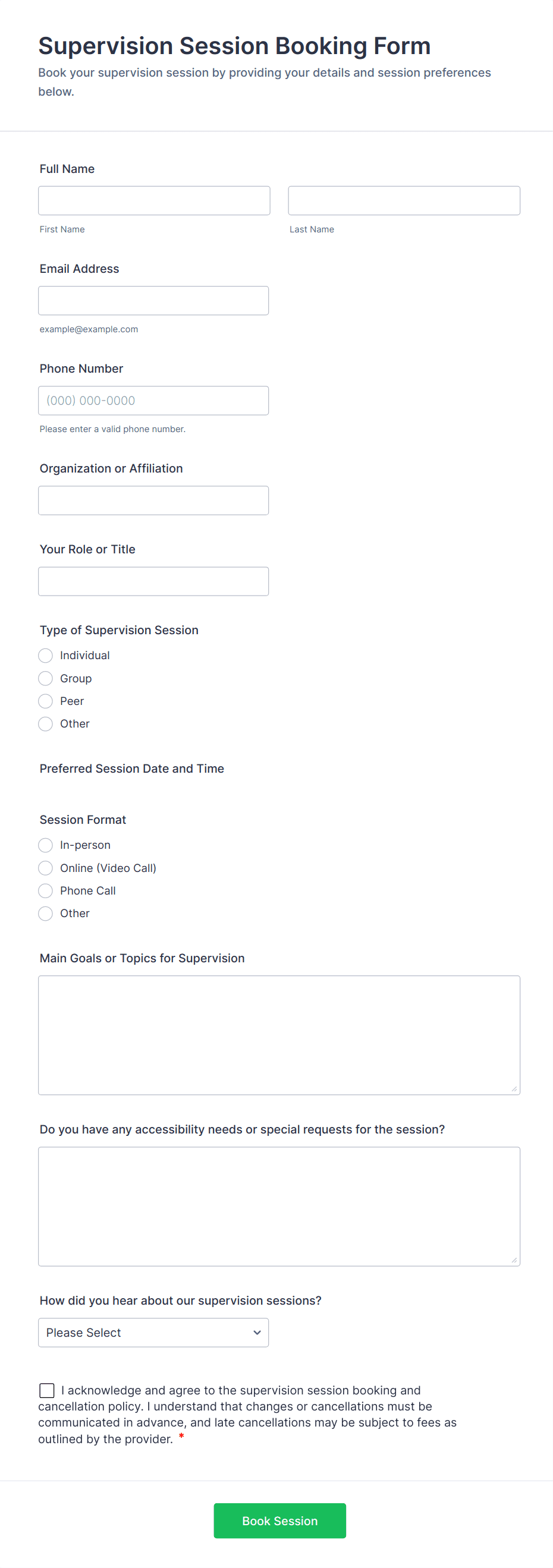Appointment forms are digital tools designed to streamline the process of scheduling meetings, consultations, interviews, or any type of appointment between service providers and clients. These forms are commonly used by healthcare professionals, salons, educational institutions, consultants, and businesses that require organized time management for their services. By collecting essential information such as preferred dates, times, contact details, and specific service requests, appointment forms help reduce scheduling conflicts, minimize no-shows, and improve overall efficiency. Whether you’re managing a busy clinic, coordinating interviews, or booking personal training sessions, appointment forms provide a structured way to handle bookings and keep your calendar organized.