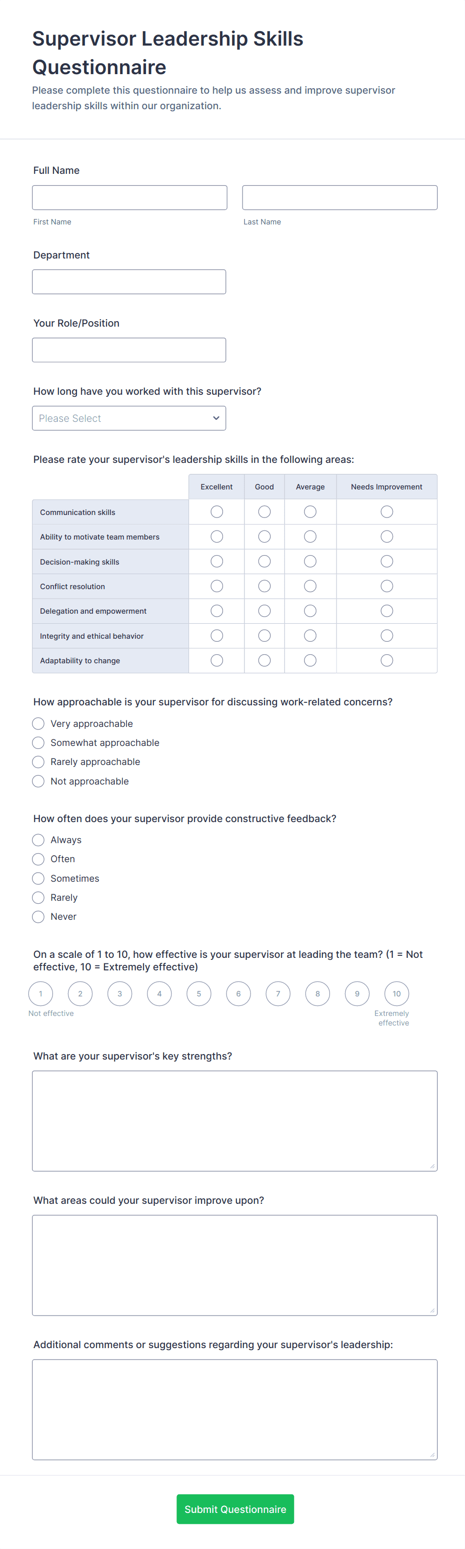 In summary, questionnaire templates offer a flexible foundation for collecting targeted information, and their adaptability makes them suitable for virtually any data-gathering scenario.
