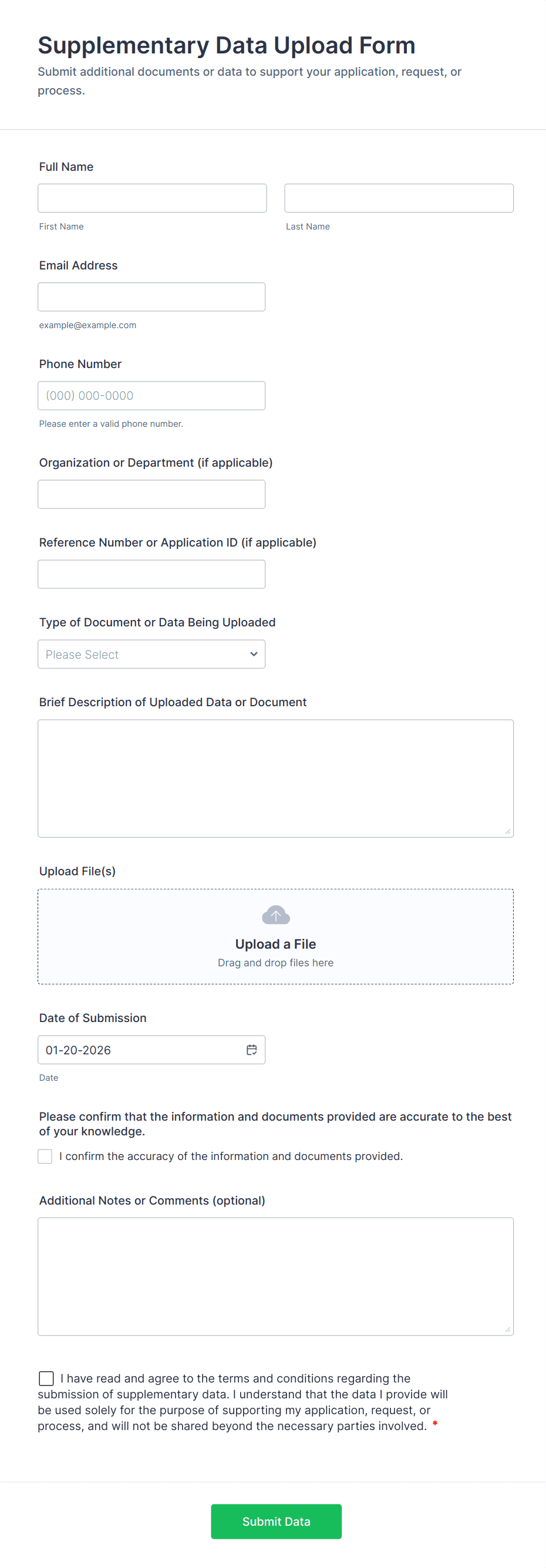 In addition to files, these forms can collect personal details, project information, comments, and any other data relevant to the submission.