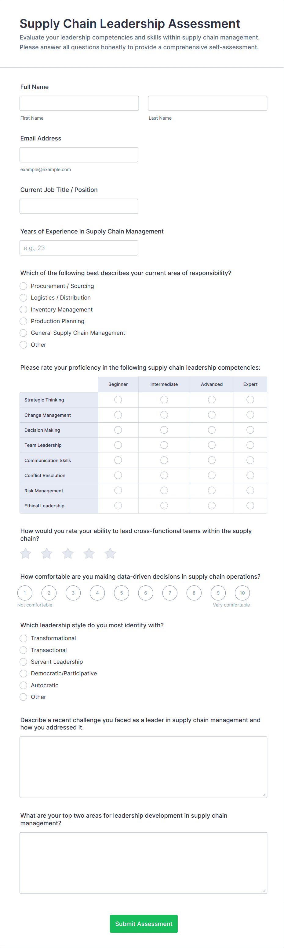 Assessment forms may include personal details, multiple-choice or open-ended questions, rating scales, comment sections, and sometimes automated scoring or feedback fields, depending on the purpose.