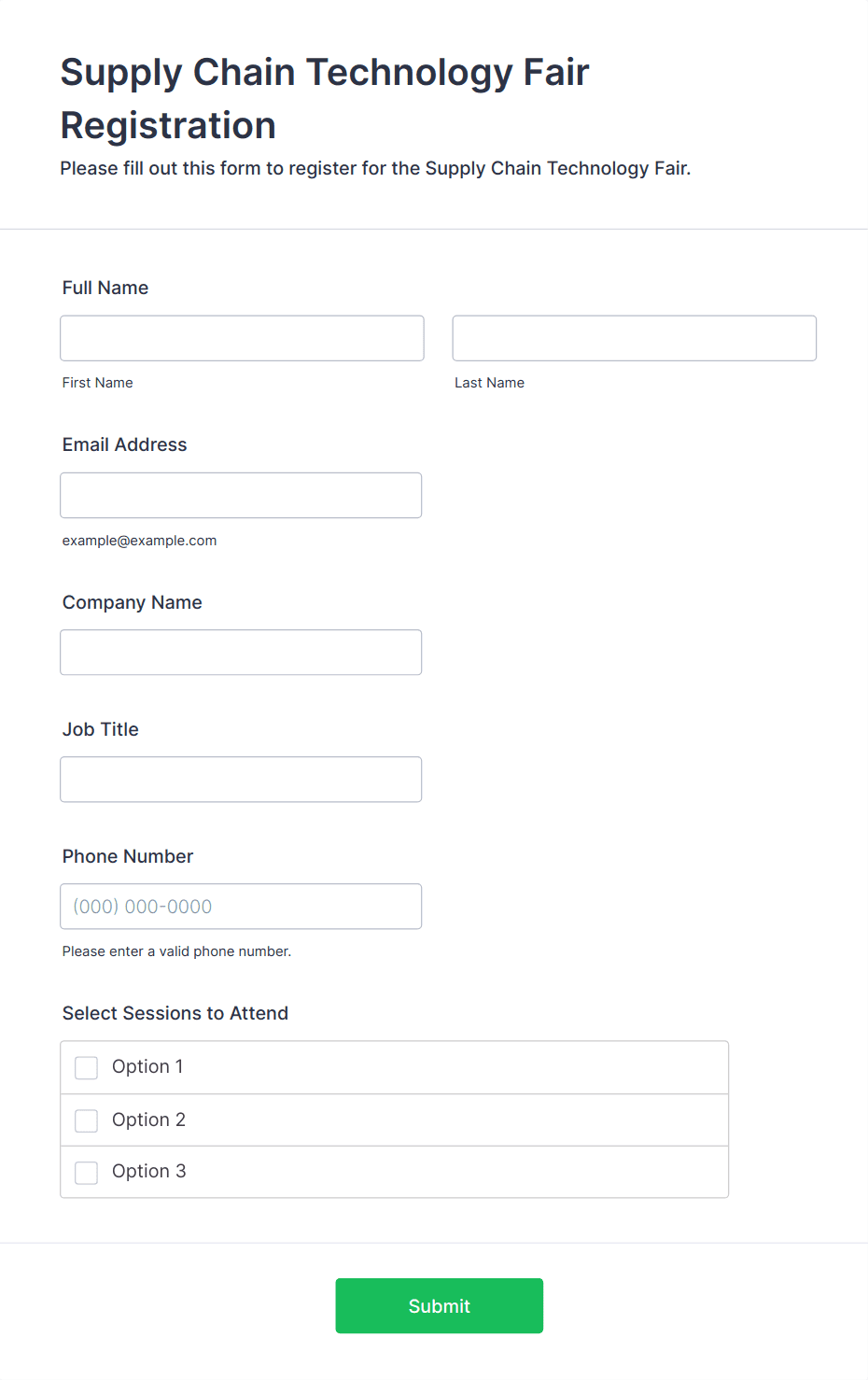 • For speaker or exhibitor forms, add fields for presentation topics, company details, or booth preferences.