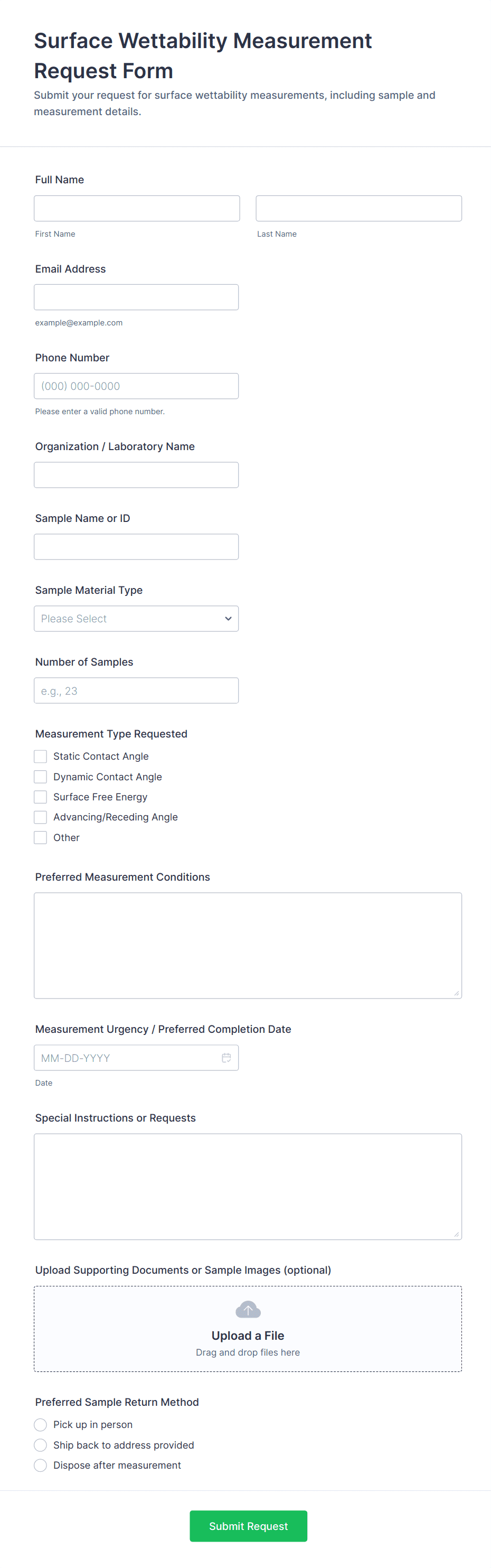 Use file upload fields for protocols, reference documents, photos, or instrument output files. This improves traceability and reduces back-and-forth.