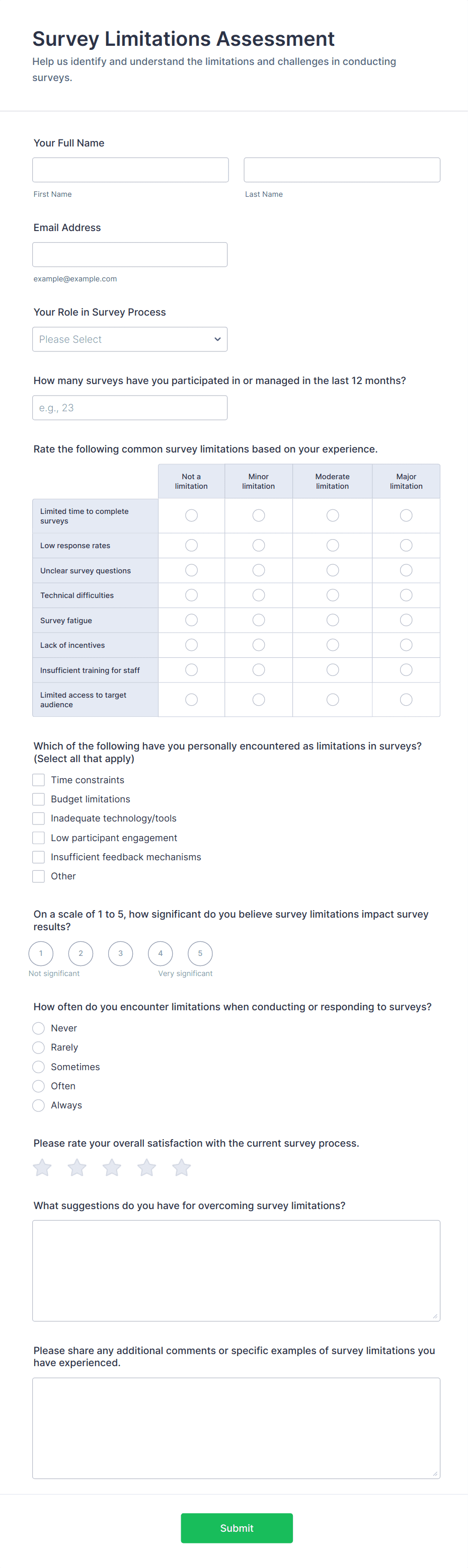 By following these steps, you can create a tailored assessment form that meets your specific needs, streamlines data collection, and provides actionable insights for your organization or project.
