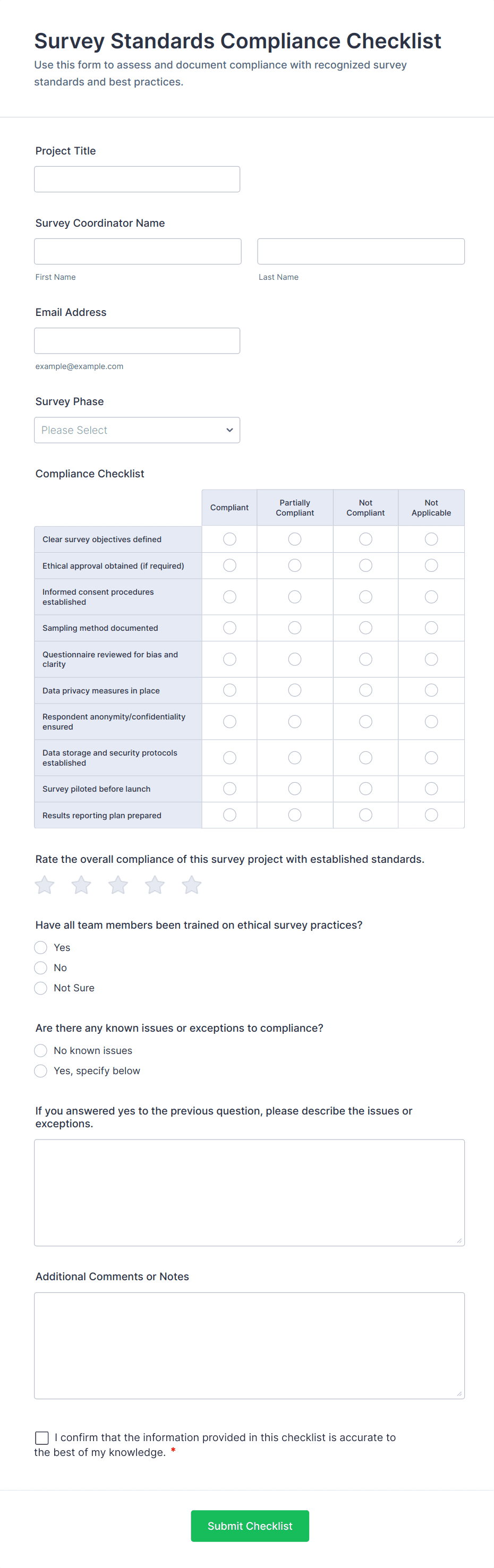 6. How do checklist forms help with compliance and quality assurance?