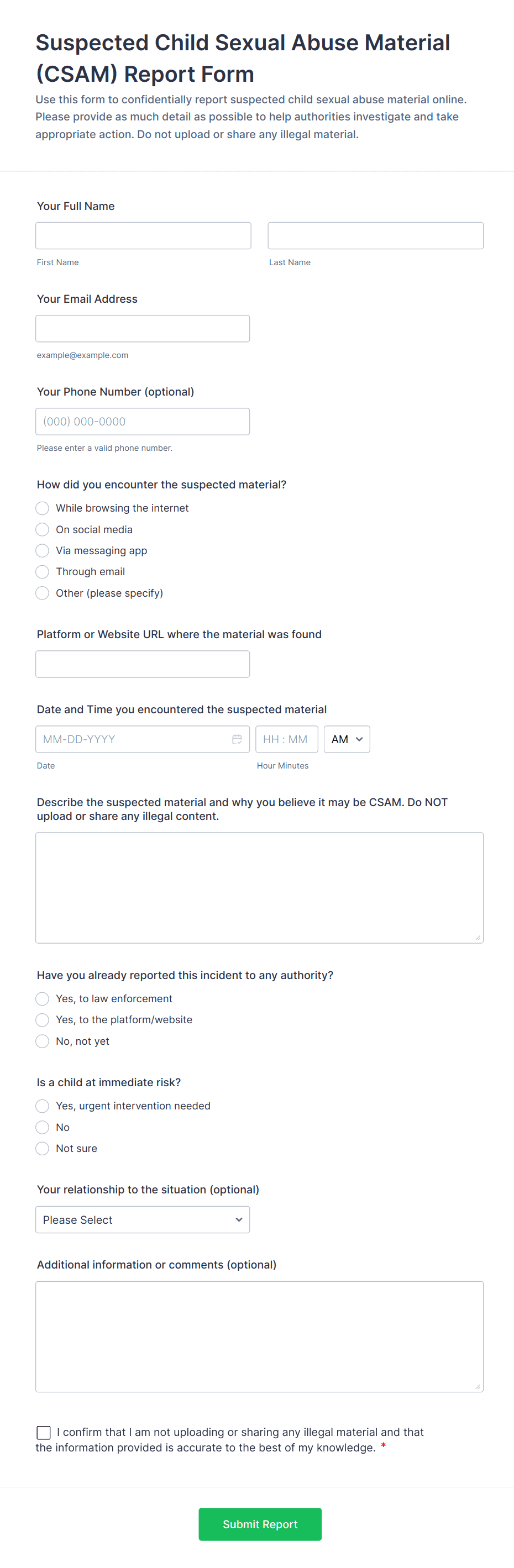 About Incident Report Forms