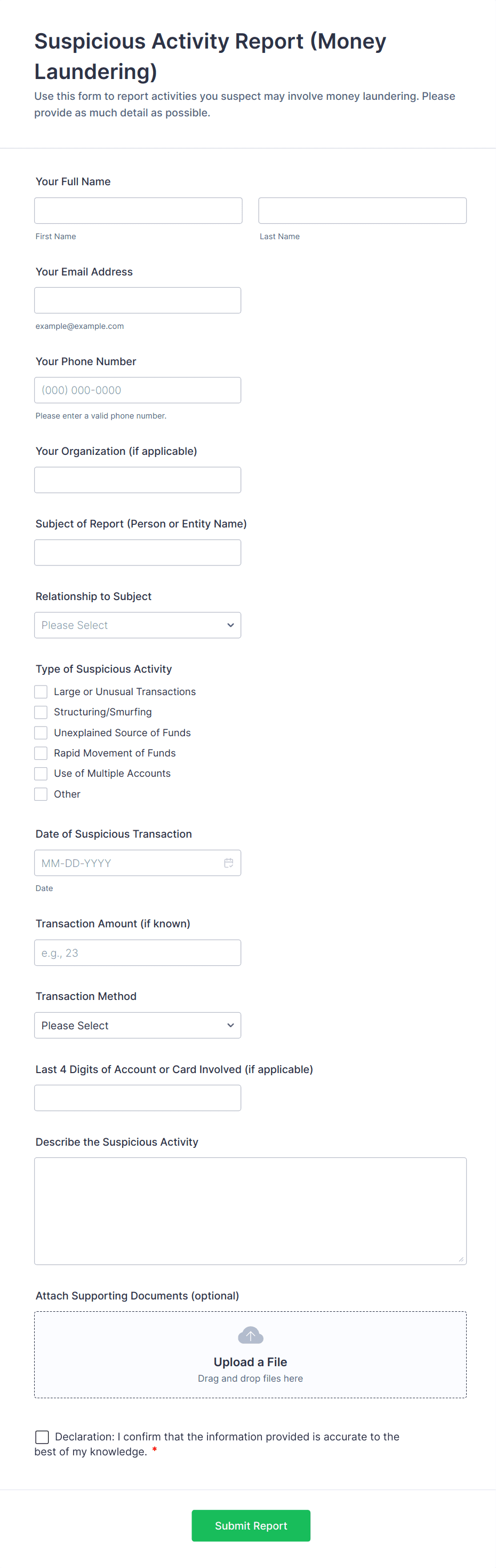 • Enable conditional logic to show or hide fields based on user input, ensuring only relevant information is collected.