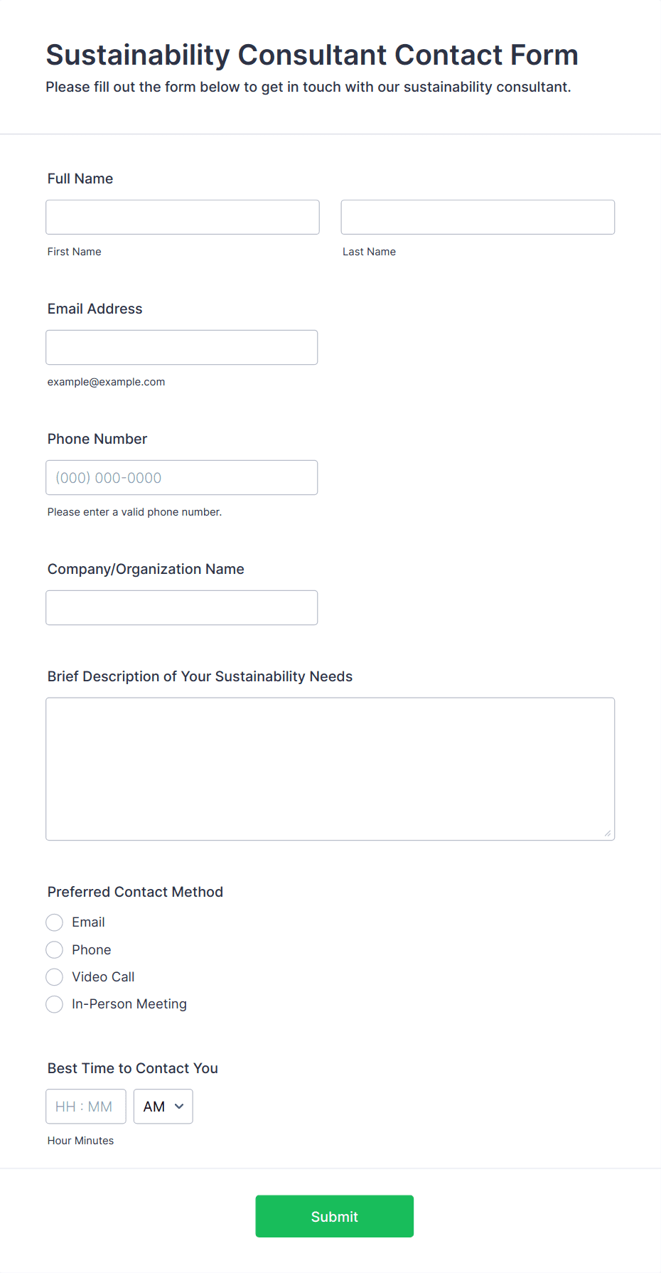 - Sales or quote request forms could ask for company details, budget, and specific service interests.