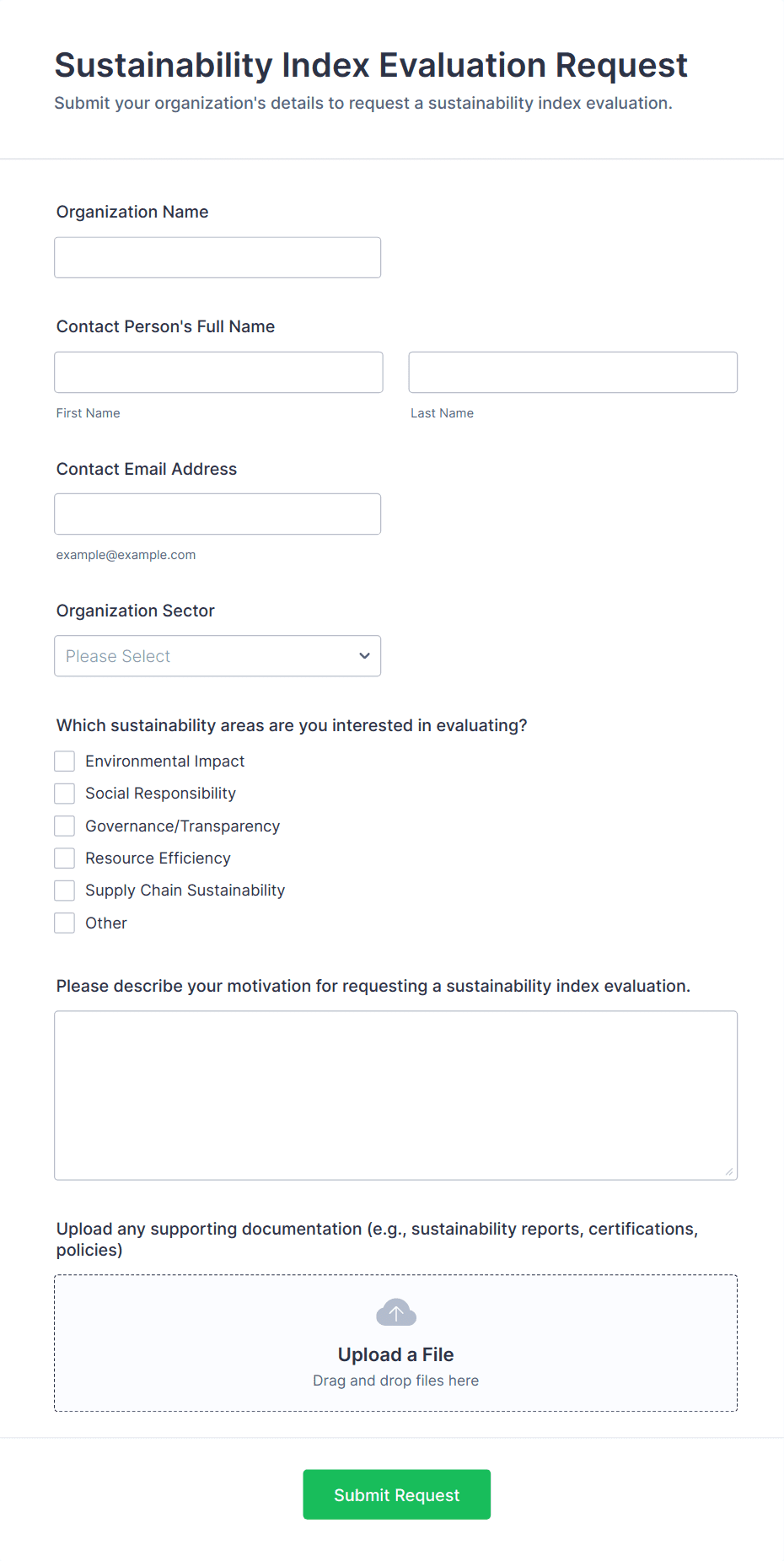 An assessment form is a questionnaire used to make assessments with all necessary metrics included. Go online with no coding!