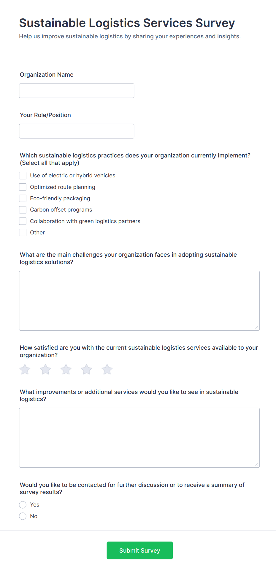 For employee surveys, consider adding anonymity options; for customer surveys, include contact fields if follow-up is needed.