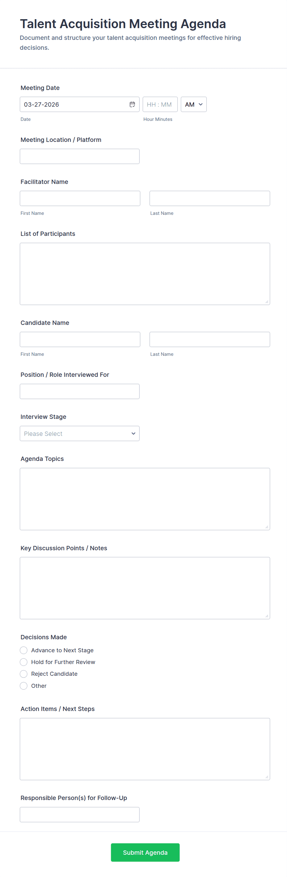 A meeting form is an online tool used to organize, schedule, and manage meetings by collecting essential information such as attendee details, agenda items, and feedback.