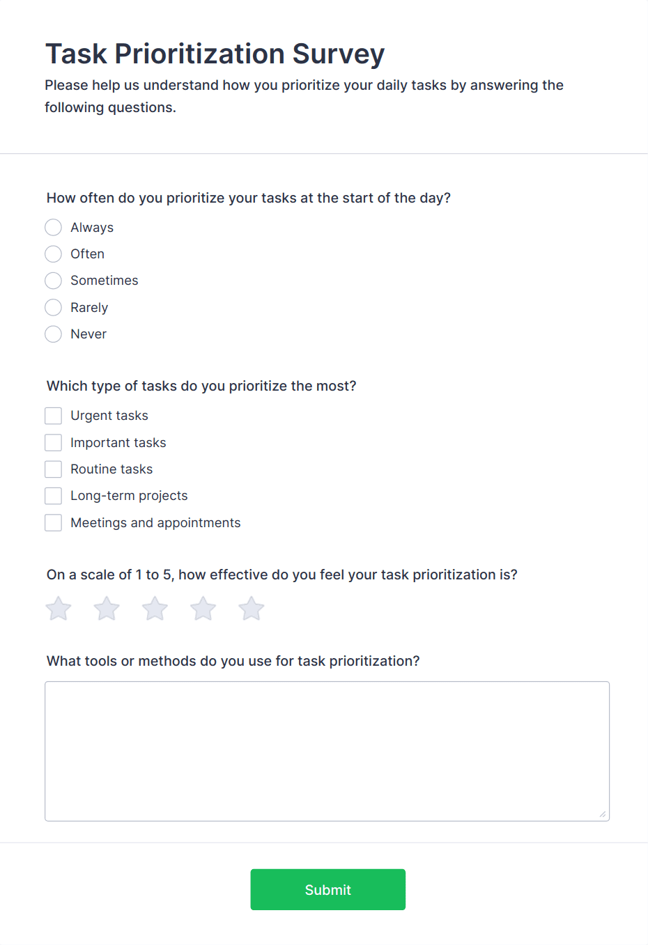• Healthcare Surveys: Assess patient satisfaction, collect health histories, or screen for symptoms.