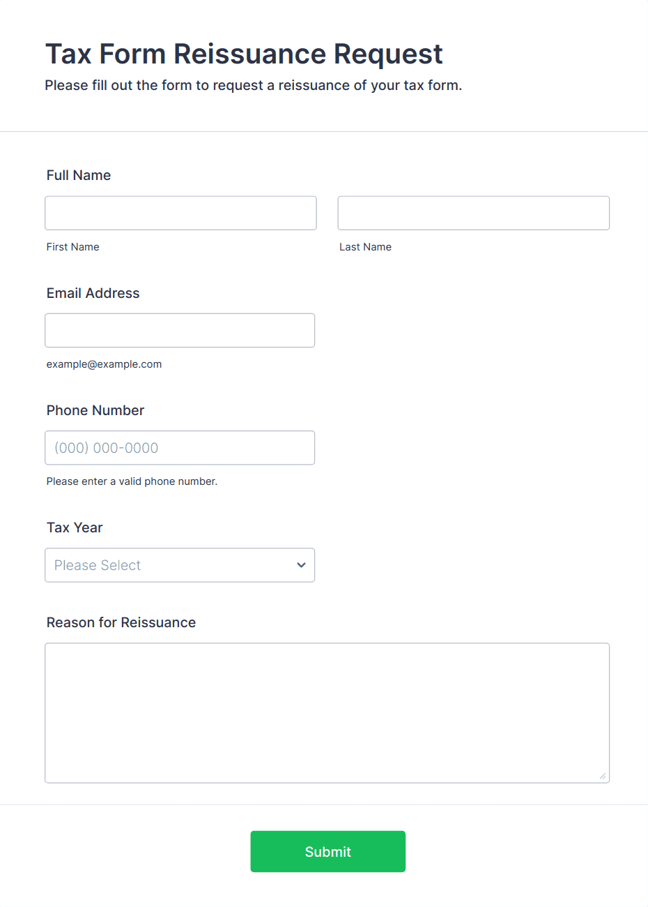 Whether you’re a government agency collecting official tax forms or an accountant gathering information from your clients, securely receive tax information online with Jotform’s Tax Forms! Start by selecting a form template below and customizing it to match your needs and branding. Then share the form or embed it in your website to be filled out on any smartphone, tablet, or computer. Submissions are stored in your secure Jotform account and can be converted into professional PDF documents automatically.