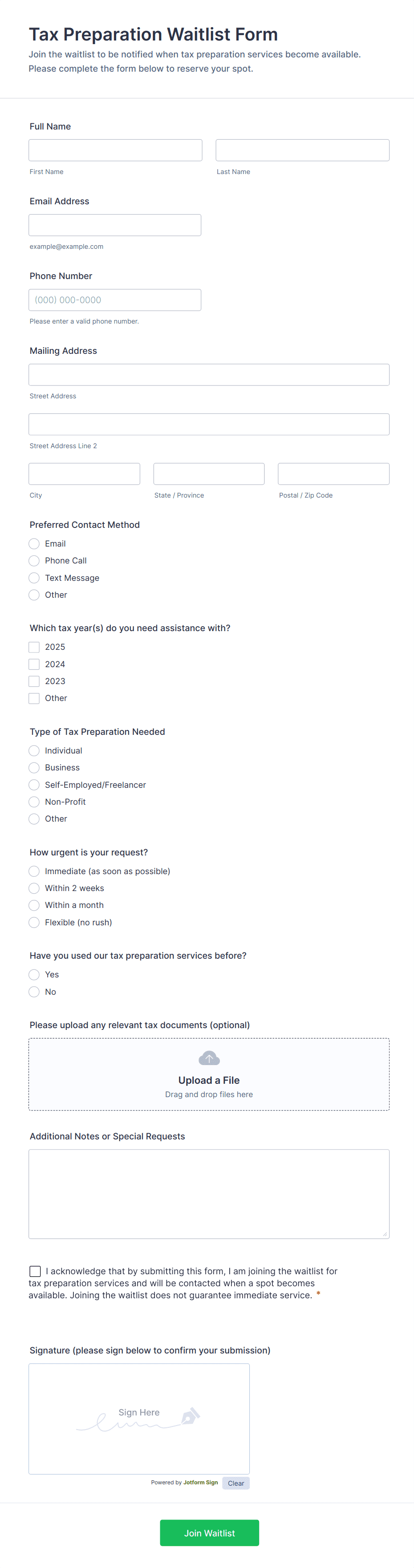 Waitlist Form