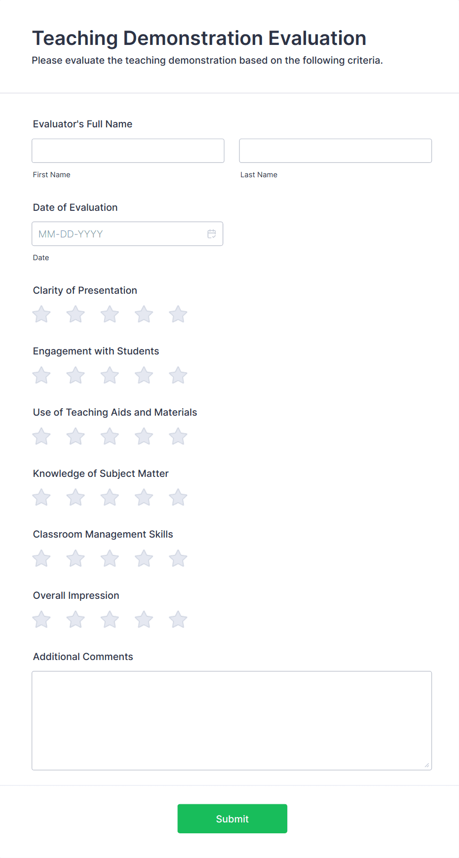 By following these steps, you can create tailored evaluation forms that streamline feedback collection, improve assessment accuracy, and support data-driven improvements in any context.