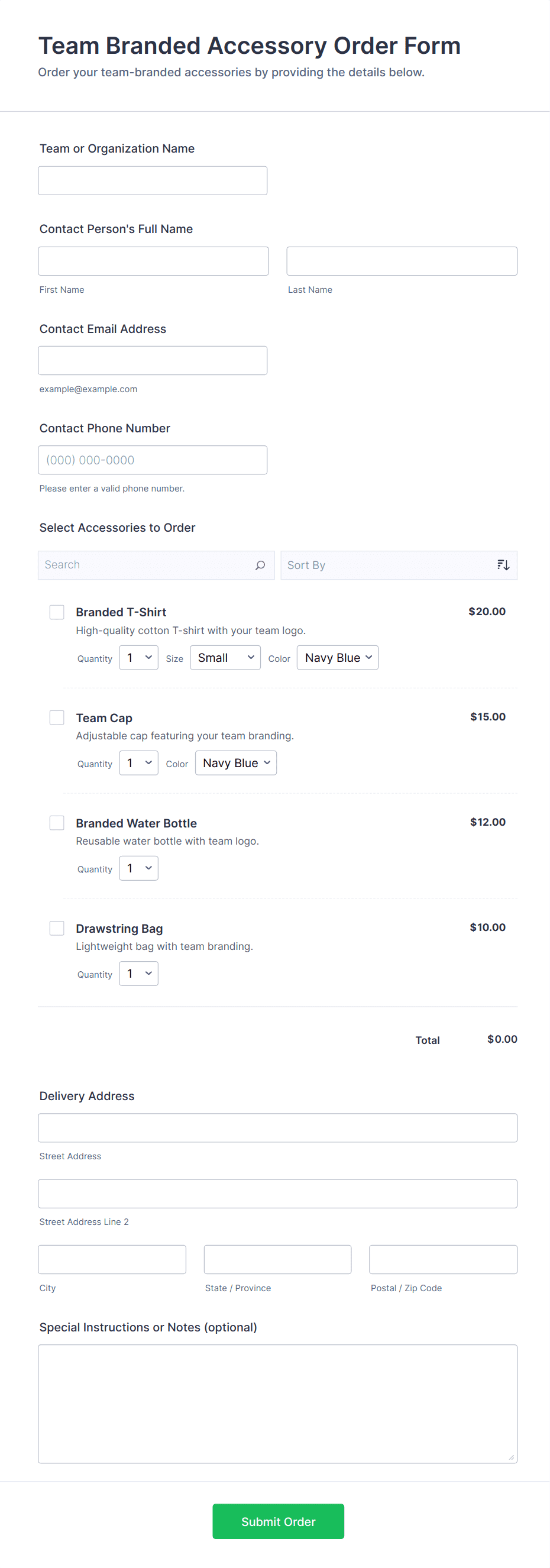 • Team Uniform Orders: Gather player information, sizes, and customization details for sports teams.
