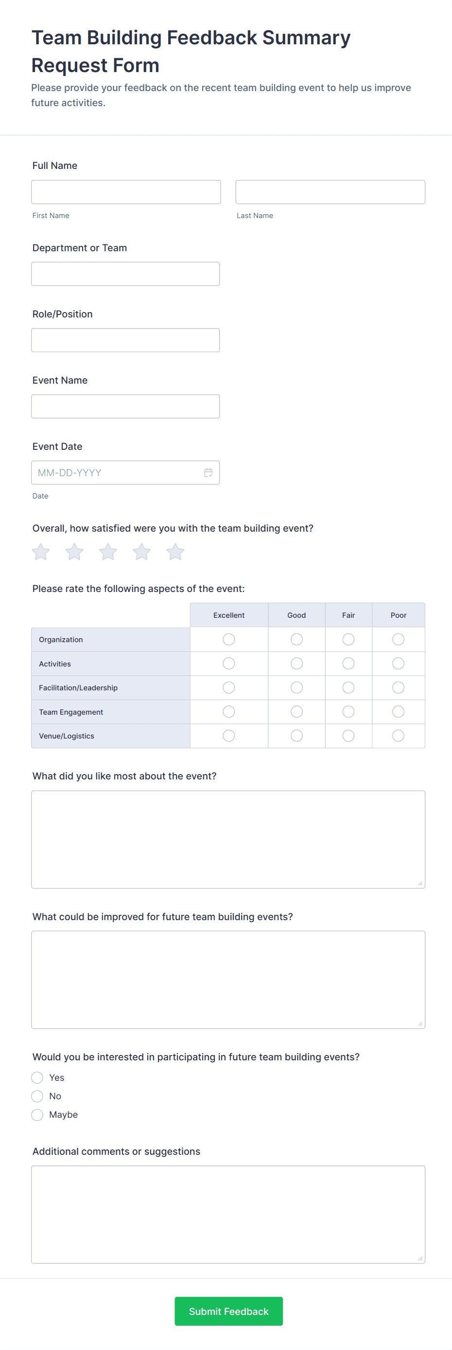 3. What information should be included in an Event Feedback Form?
