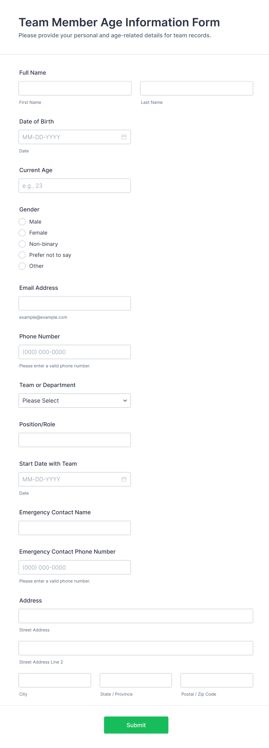 • Identify the purpose of your form (e.g., onboarding, record update, emergency contact).