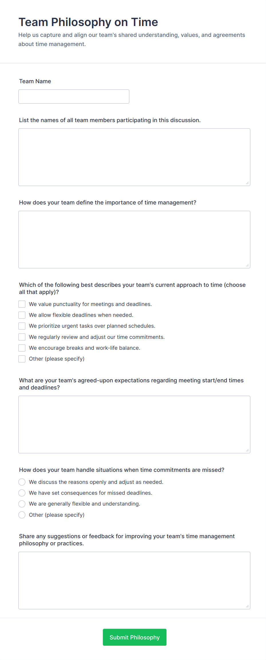 A meeting form is an online tool used to organize, schedule, and manage meetings by collecting essential information such as attendee details, agenda items, and feedback.