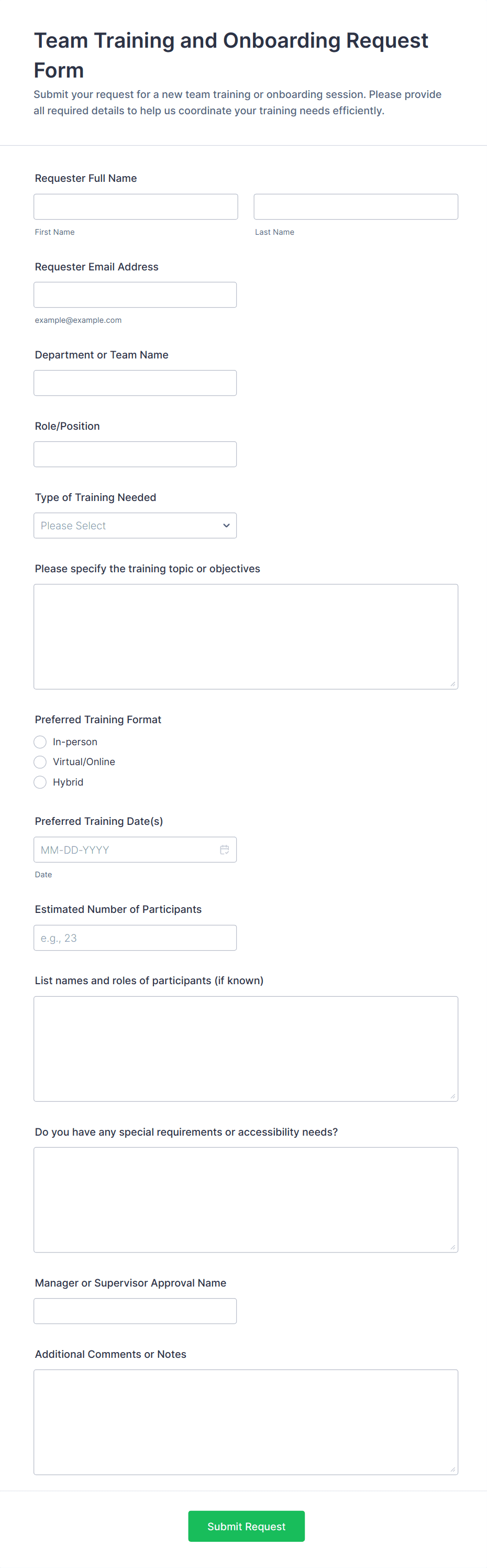 Onboarding Form Templates are specialized digital forms designed to streamline the process of integrating new employees, clients, students, or members into an organization or program. These templates help collect essential information, set expectations, and ensure a smooth transition for newcomers. Common use cases include employee onboarding, client intake, volunteer registration, student enrollment, and vendor onboarding. By standardizing the onboarding process, these forms help organizations gather necessary data, provide important resources, and establish clear communication from the very beginning.