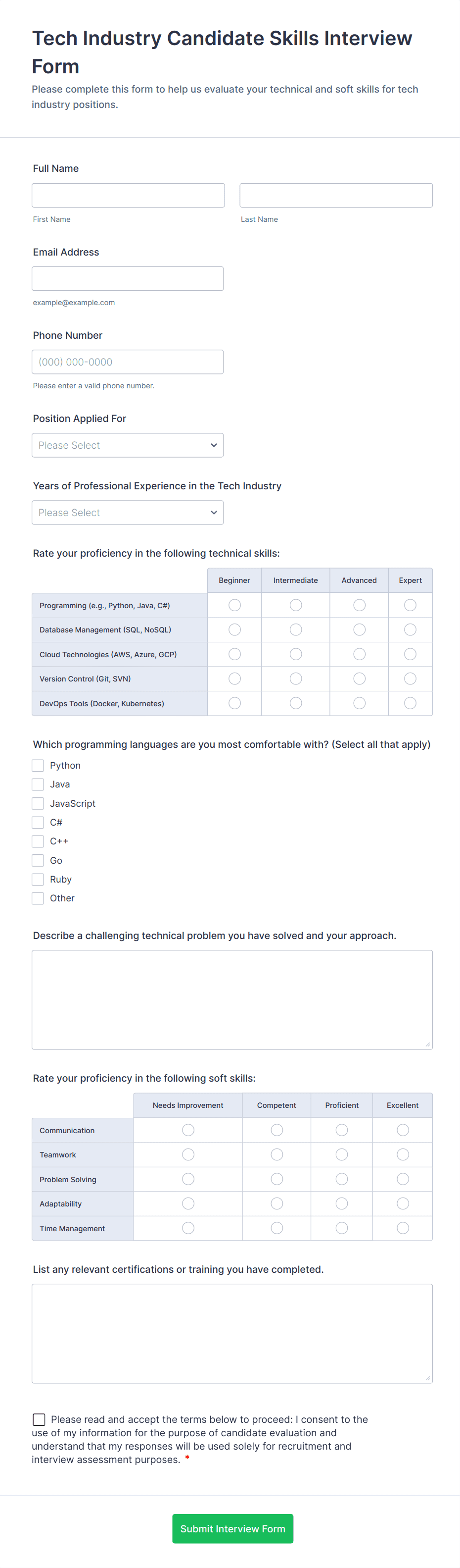 Responsive Interview Questionnaire Form