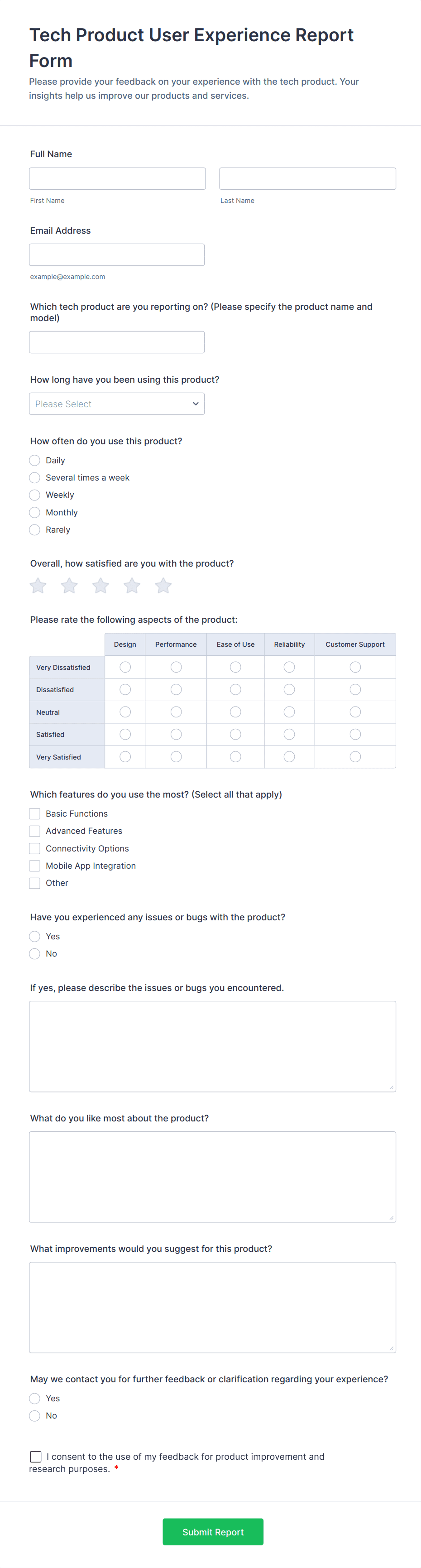 AI Agent Chat Interaction Feedback Form helps product and support teams collect user satisfaction scores and comments about AI chats, turning feedback into insights to improve AI experiences.