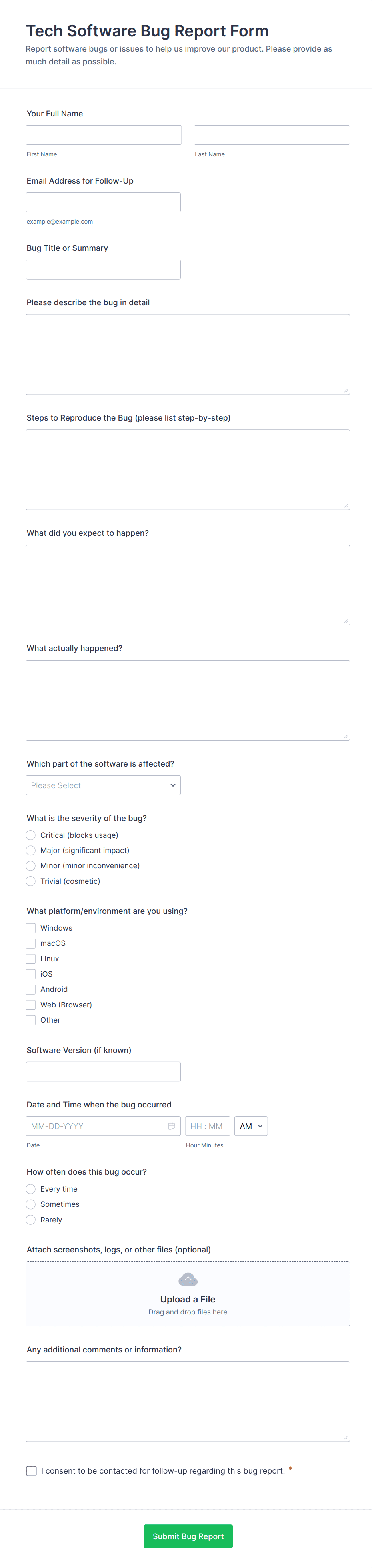 Keep track of service requests and hire new experts for your tech support team. Our free IT forms will help you manage your IT department without exhausting your technical skills. Using our drag-and-drop Form Builder, you can easily customize any of our IT form templates to track bugs, collect job applications, and gather software feedback. Integrate your form with task management apps to automate repetitive tasks. Streamline your workflow and create an IT form now!