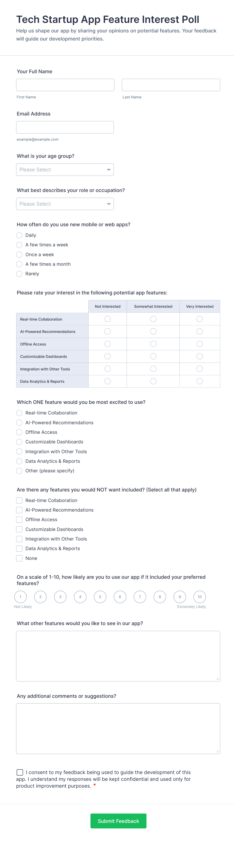 • If anonymity is important (e.g., for employee polls), ensure identifying fields are optional or omitted.