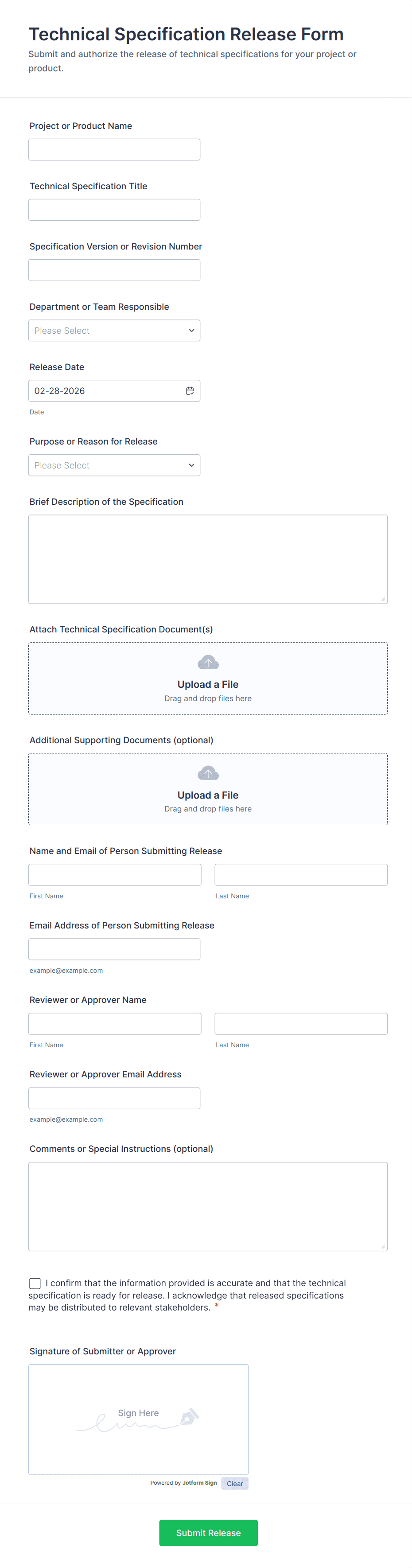 Approval Form Templates are specialized online forms designed to streamline and automate the process of requesting, reviewing, and granting approvals for a wide range of business and organizational needs. These templates are commonly used for leave requests, purchase orders, expense reimbursements, project proposals, document sign-offs, and more. By providing a structured workflow, approval forms ensure that requests are routed to the appropriate decision-makers, tracked efficiently, and documented for compliance and transparency. Whether you’re managing internal HR processes, procurement, or project management, approval forms help standardize and accelerate decision-making.
