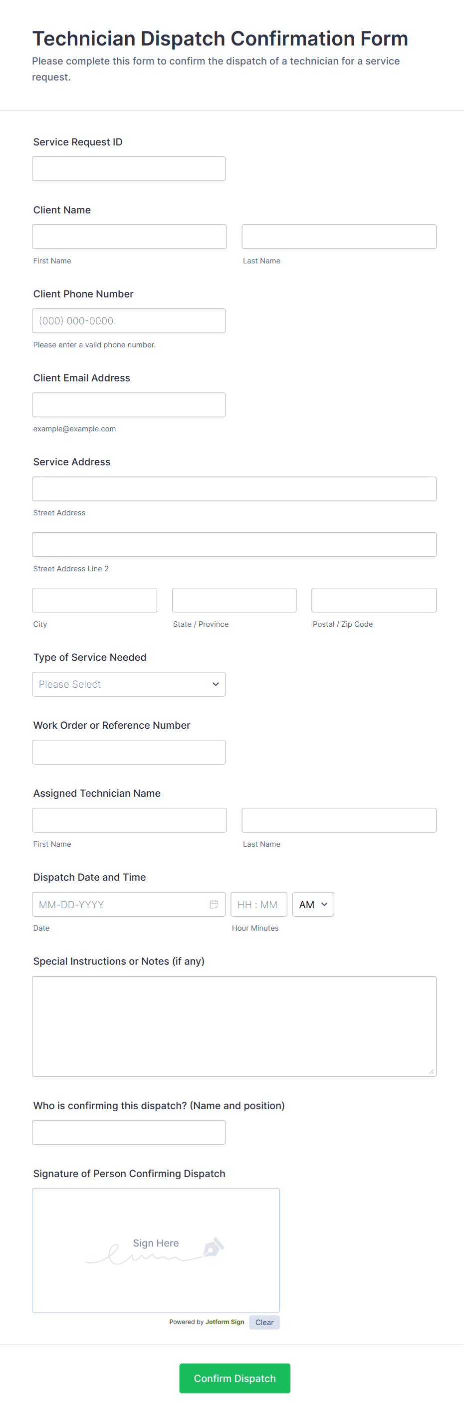 Technician forms are used by field service technicians, maintenance teams, IT support staff, quality inspectors, and operations managers across multiple industries.
