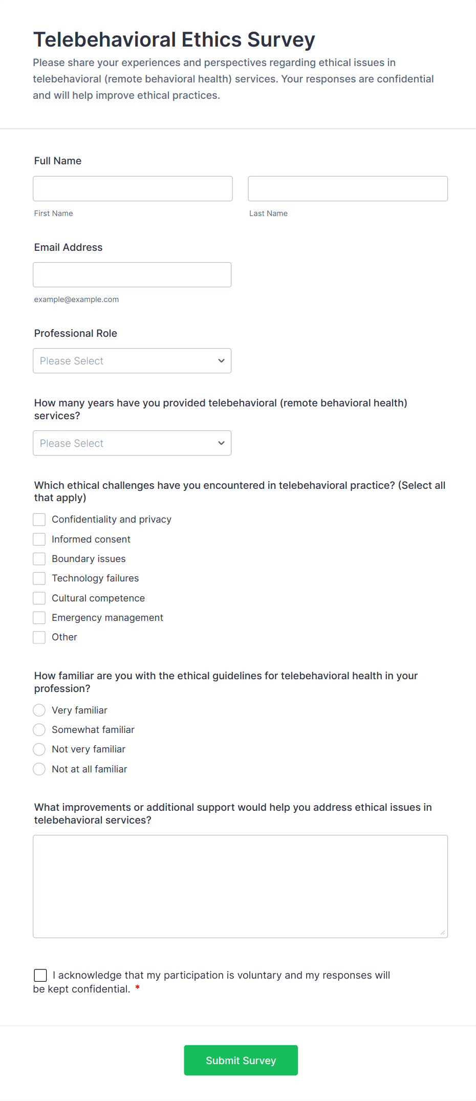 Conduct mental health assessments with this free survey template for businesses, schools, and more. Easy to customize and fill from any device. No coding.