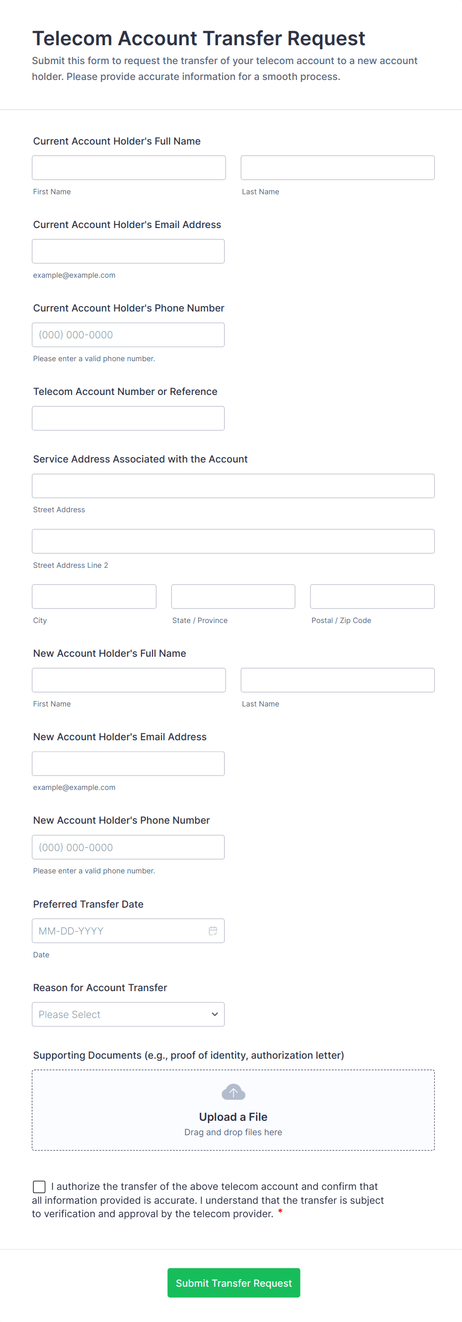 - Payment Authorization Forms: Include payment details, recurring payment options, and secure payment gateway integrations.