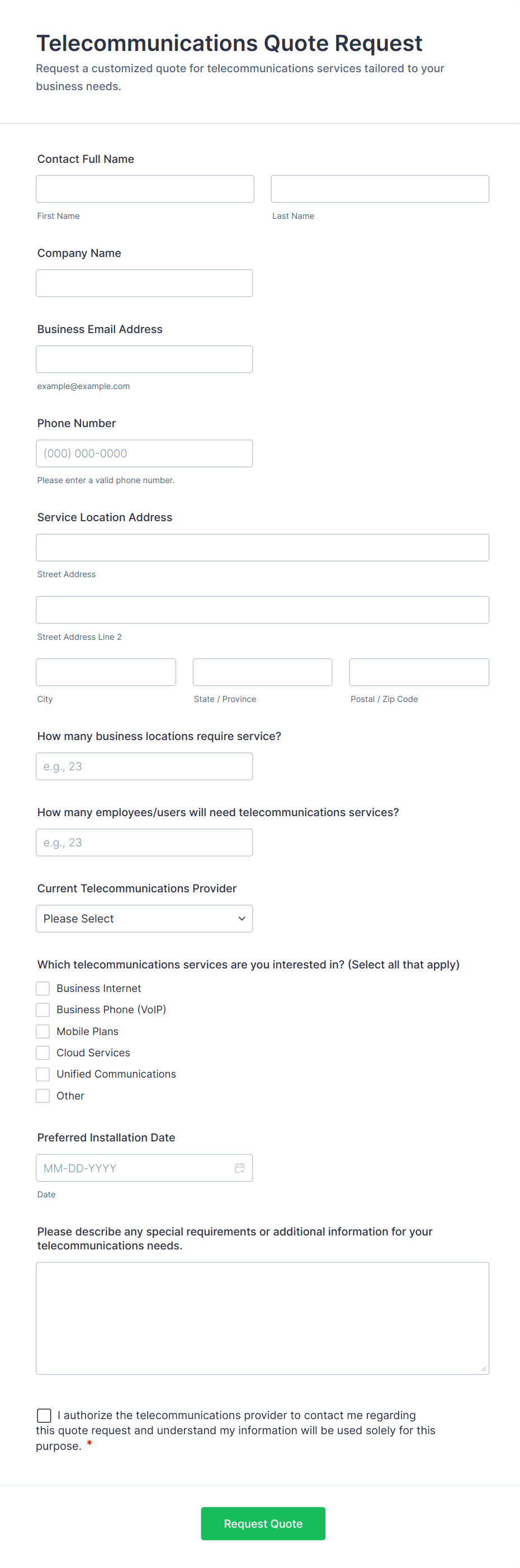 • For service-based quotes, include fields for location, preferred dates, and specific requirements.