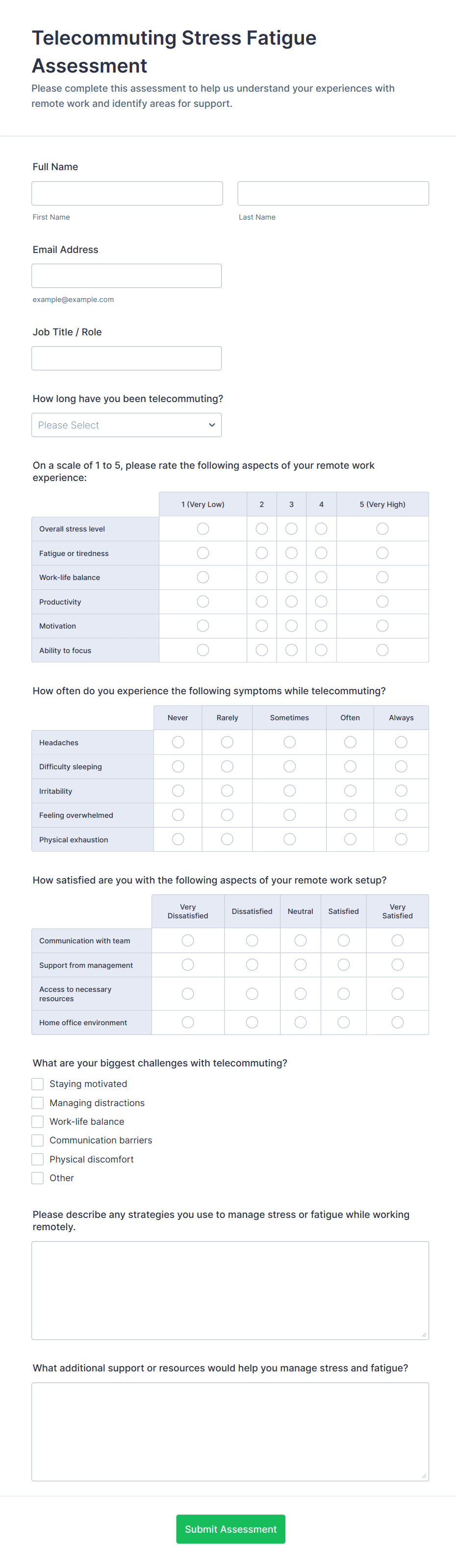 Telecommuting forms serve a wide range of purposes for organizations embracing remote or hybrid work models. They address common challenges in remote work management, such as communication gaps, equipment tracking, and productivity monitoring. Here’s how telecommuting forms can be used, who benefits from them, and how their content may vary: