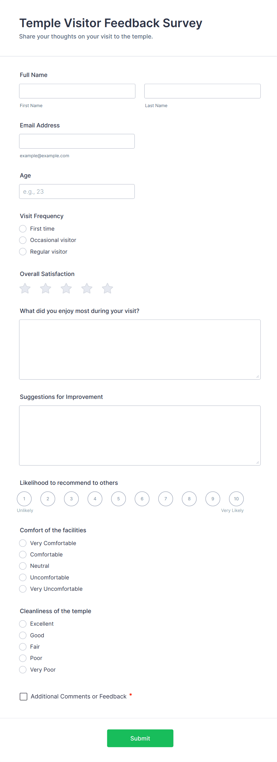 • Optional contact information fields if you wish to follow up with respondents