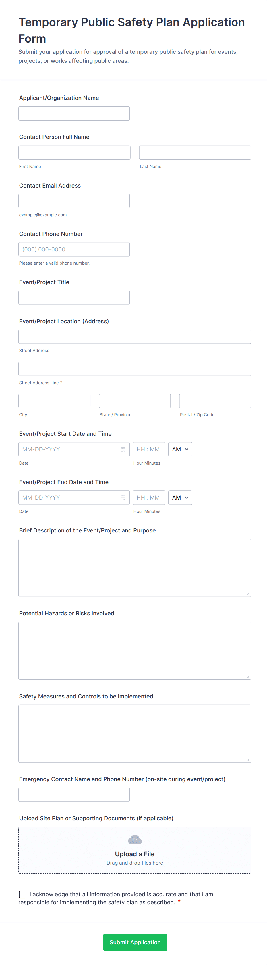 - Permit and License Forms: Often require detailed personal information, document uploads, declarations, and digital signatures.