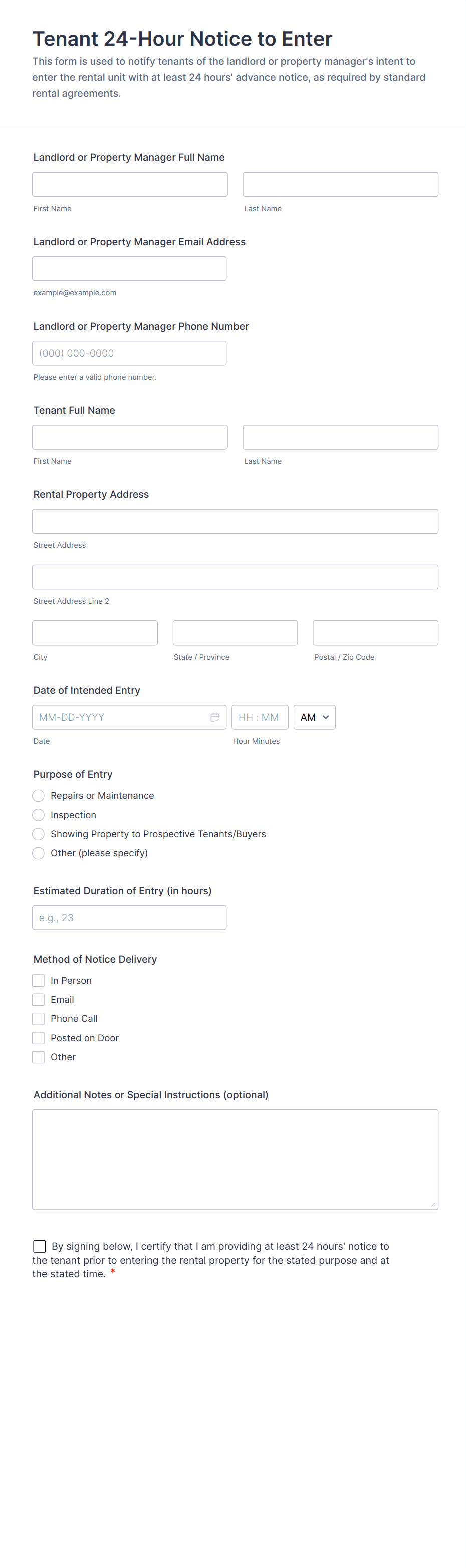 • Use conditional logic to show or hide fields based on user responses (e.g., only display pet information if the tenant has pets).