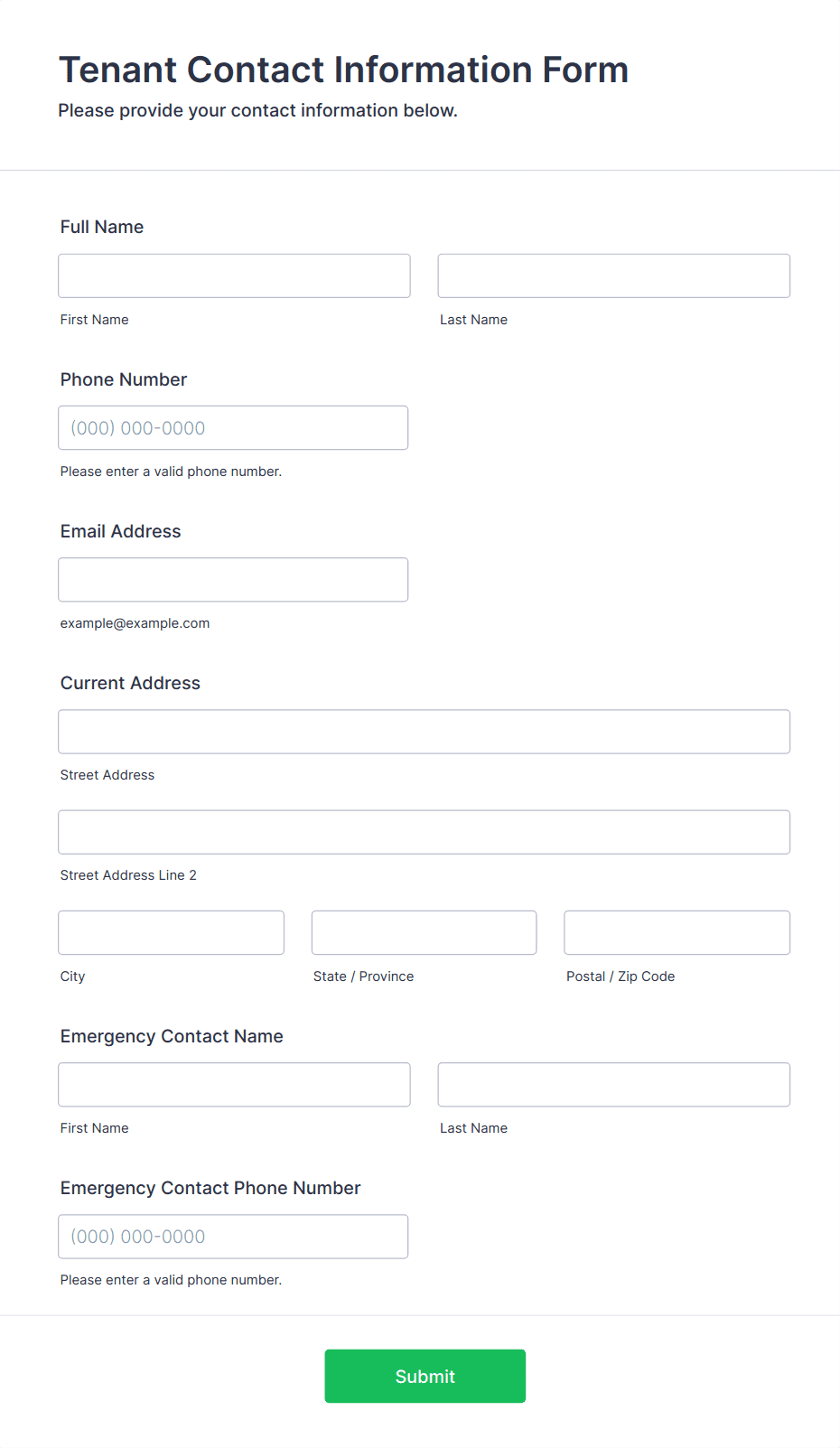 At a minimum, contact forms typically collect the user’s name, email address, and message. Depending on the use case, additional fields like phone number, inquiry type, or file uploads may be included.