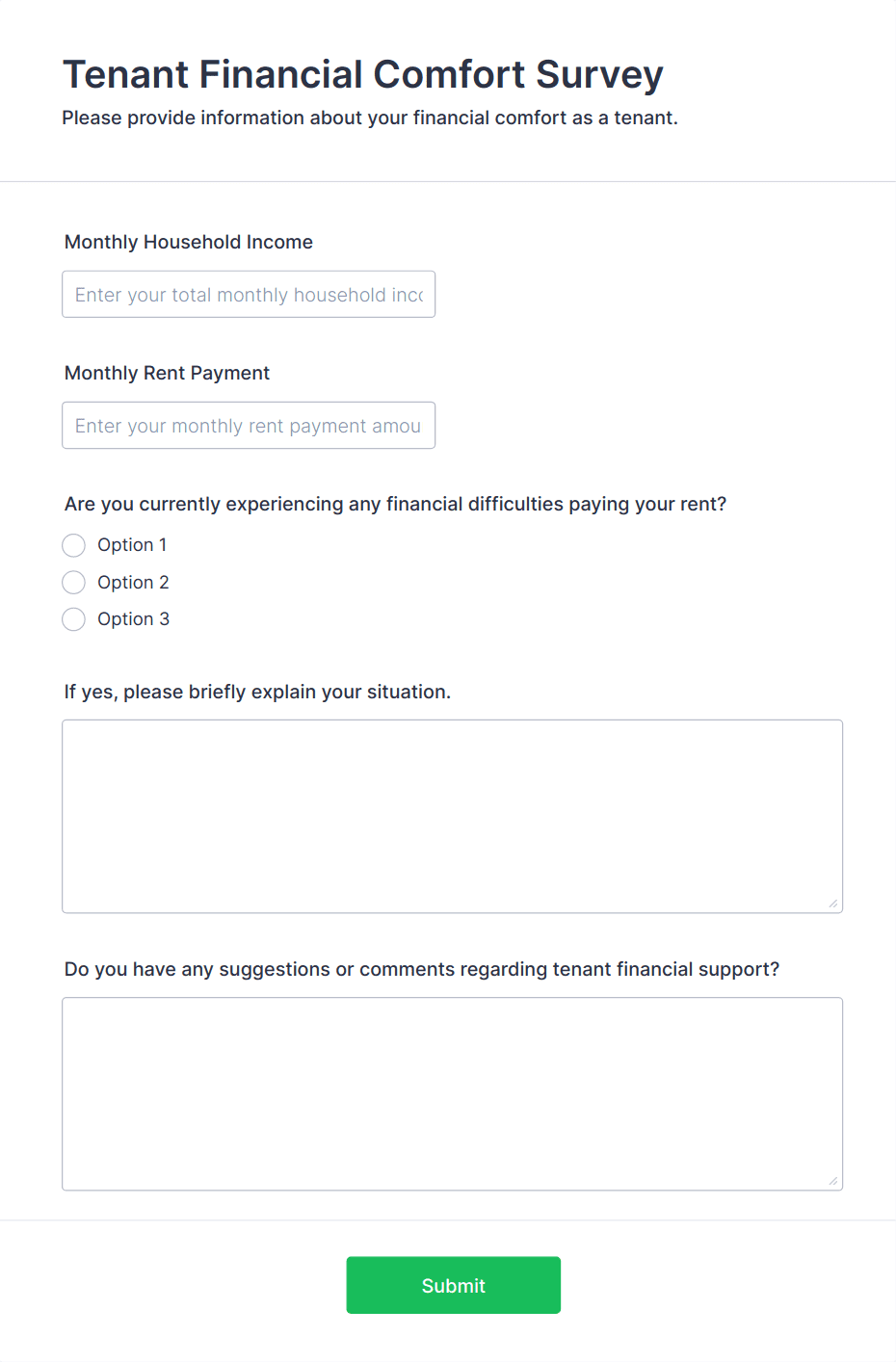 • Use conditional logic to show or hide fields based on user responses (e.g., only display pet information if the tenant has pets).
