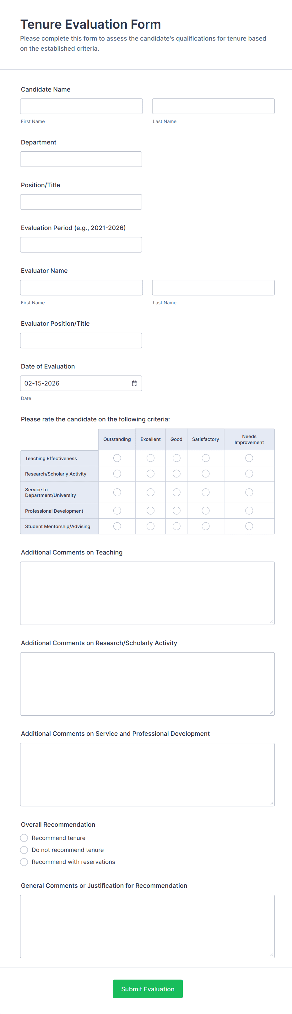 An evaluation form is a structured document or online tool used to collect feedback, assess performance, or measure satisfaction in various settings such as workplaces, schools, events, or customer interactions.