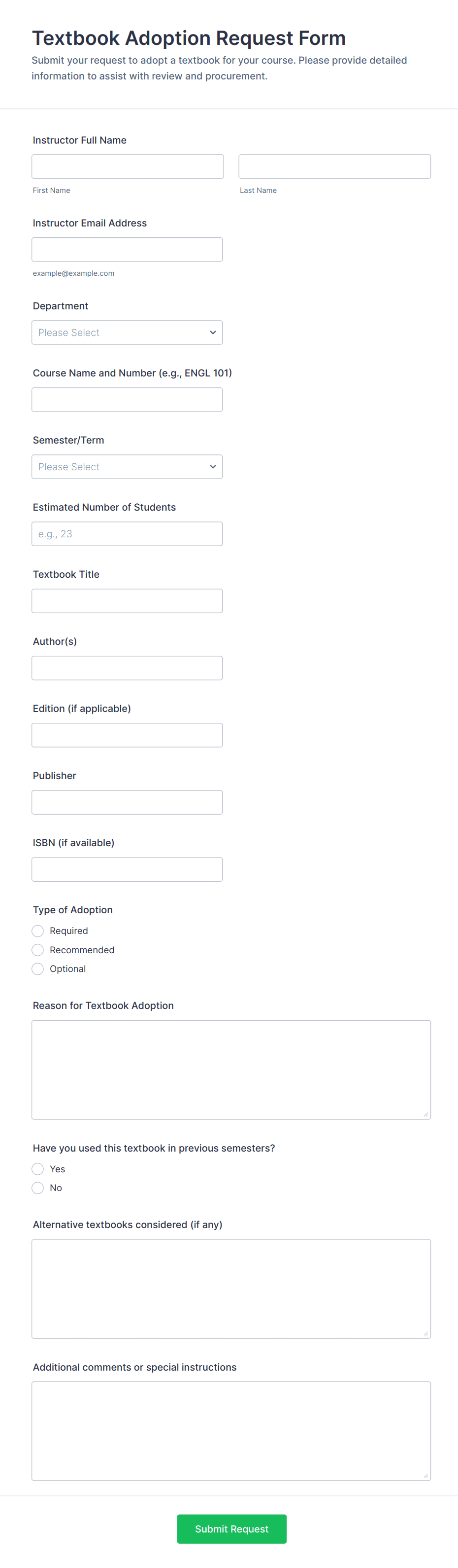 • Internal Requests: May include fields for employee ID, department, and internal cost codes.