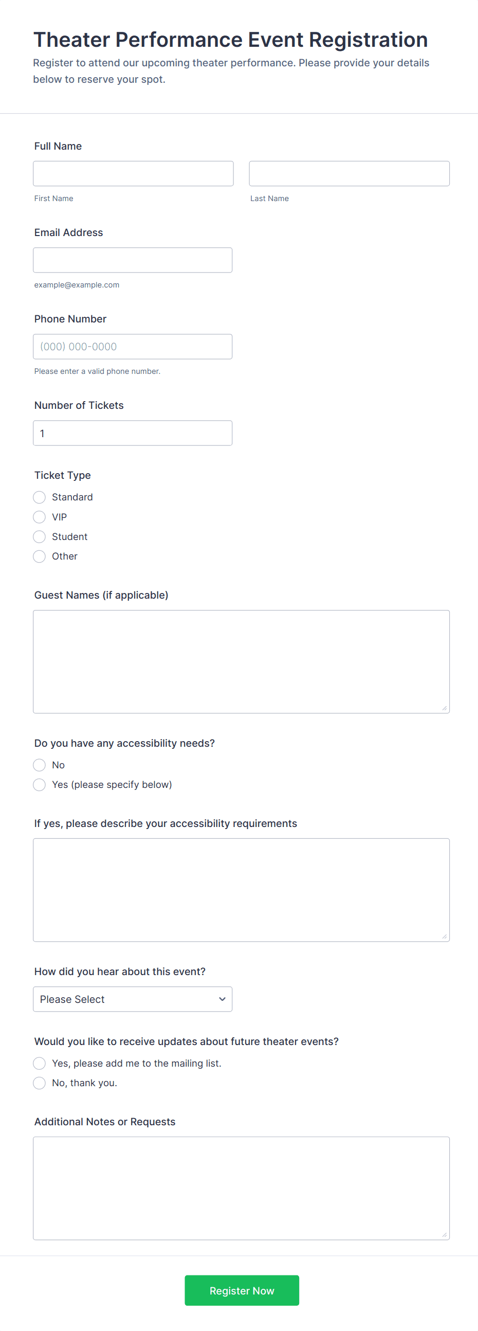 - Some forms may require additional fields for accessibility needs, travel arrangements, or merchandise pre-orders.