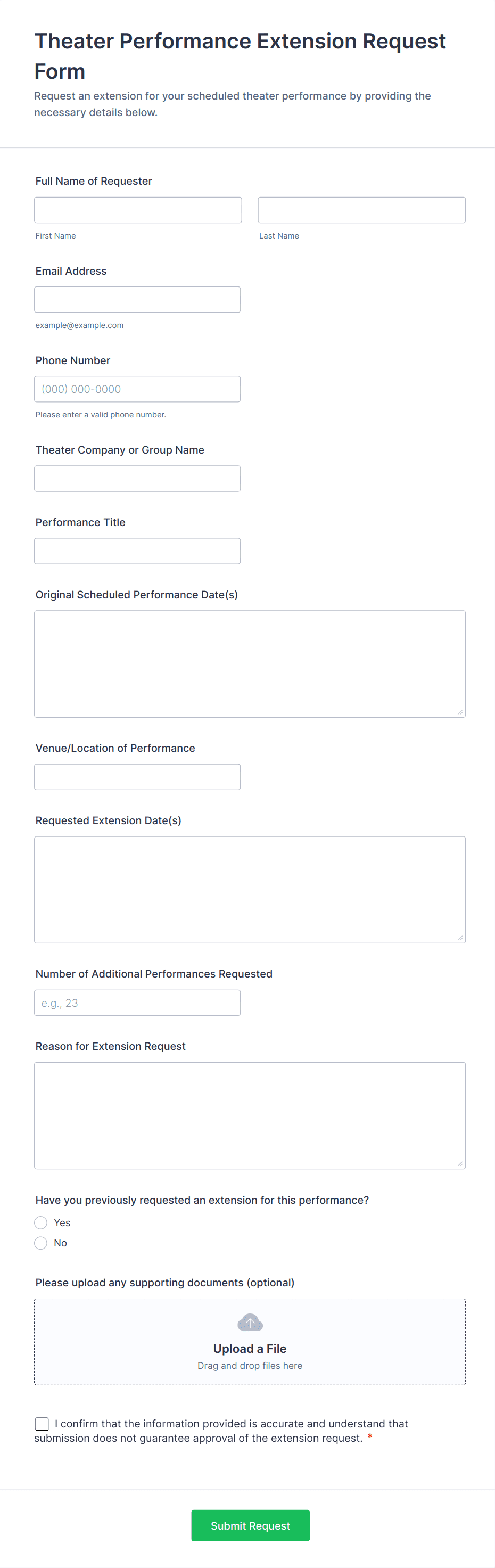 - Customize fields based on your use case. For example, academic forms may need course codes, while lease extensions require property details.