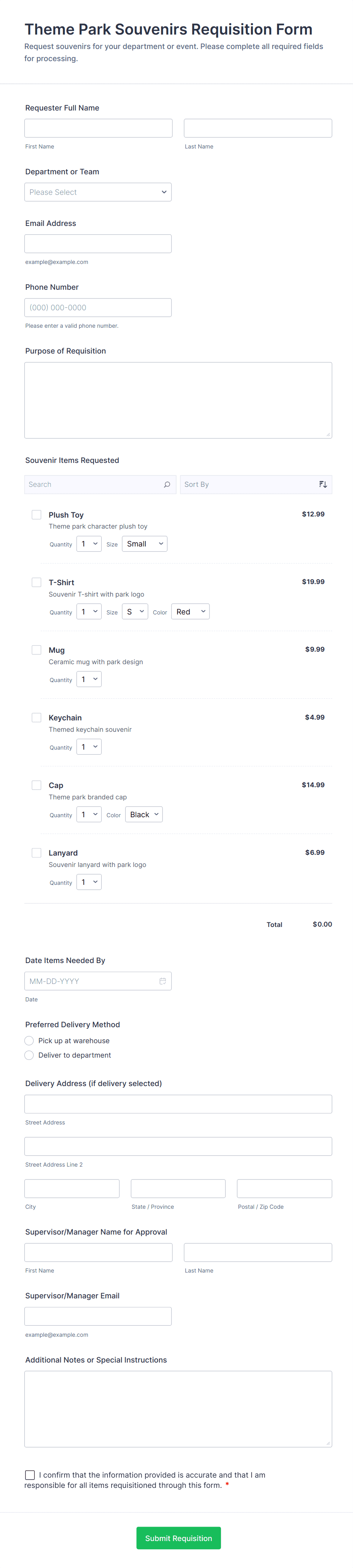• Internal Requests: May include fields for employee ID, department, and internal cost codes.