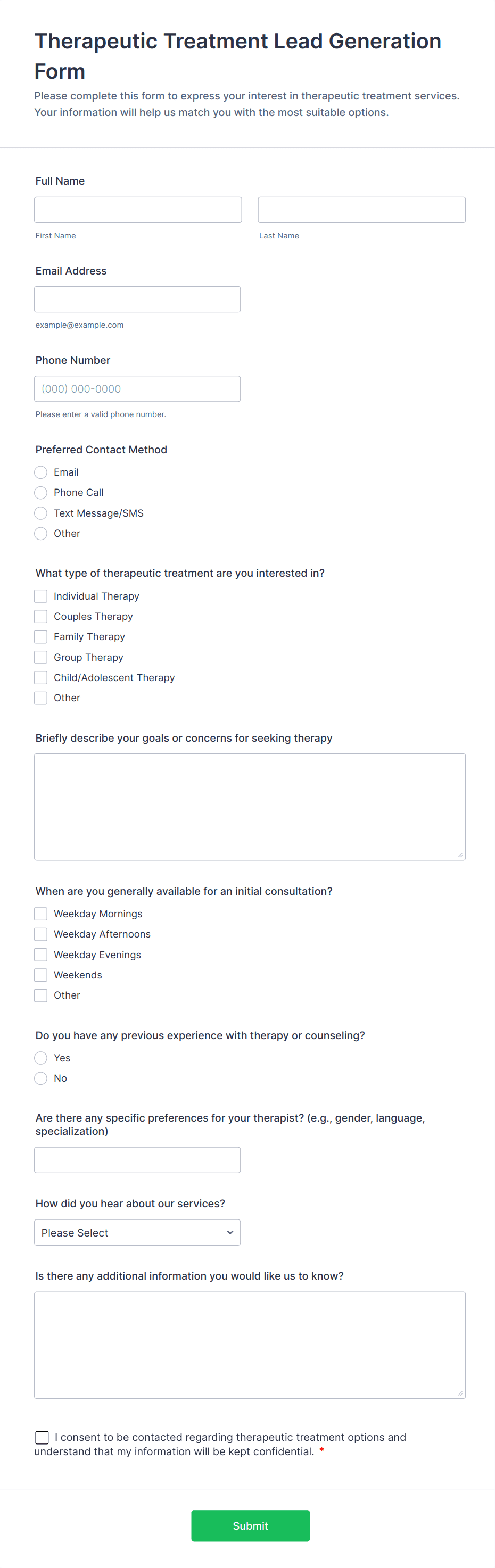 Lead generation forms are specialized online forms designed to capture valuable information from potential customers, clients, or prospects. These forms are commonly used by businesses and organizations to collect contact details, preferences, and other relevant data that can be used to nurture leads and drive sales or engagement. Typical use cases include newsletter sign-ups, event registrations, quote requests, demo bookings, and gated content downloads. By strategically placing lead generation forms on websites, landing pages, or social media, organizations can efficiently gather high-quality leads and streamline their marketing and sales processes.