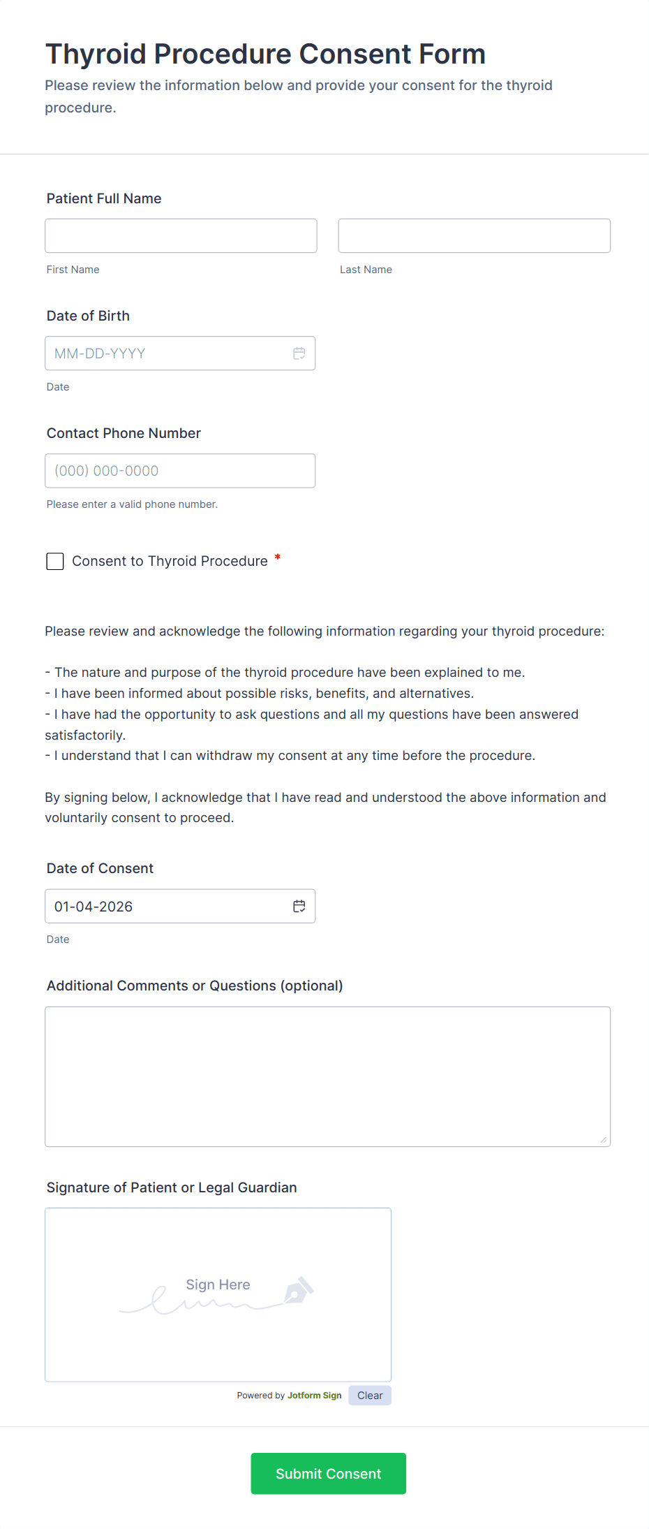 Creating an informed consent form with Jotform is a straightforward process that ensures you capture all necessary information while maintaining compliance and professionalism. Whether you’re a healthcare provider, researcher, or event organizer, Jotform’s intuitive platform allows you to design forms that meet your unique requirements. Here’s how to get started and optimize your informed consent form for your specific use case: